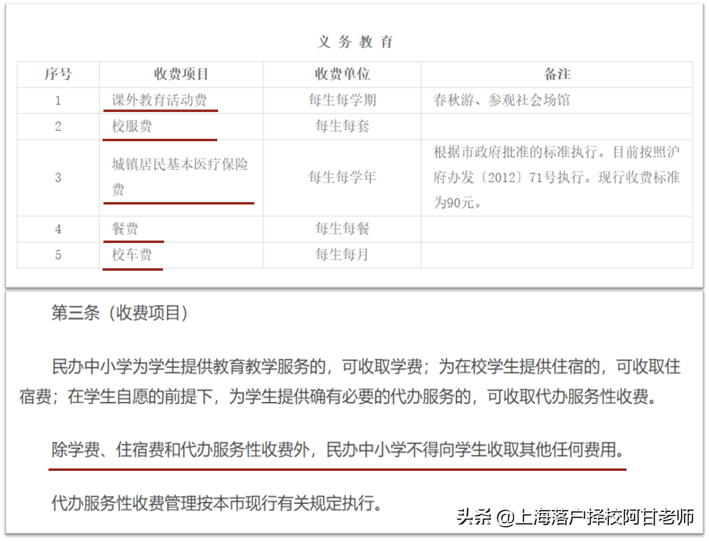 学费和住宿费好理解,代办费很多人可能就不懂了?按照官方的指导就是就这么 5 个,课外教育活动费、校服费、城镇居民基本医疗保险费,餐费以及校车费,也就是说超出这些的费用,学校一律不准收!