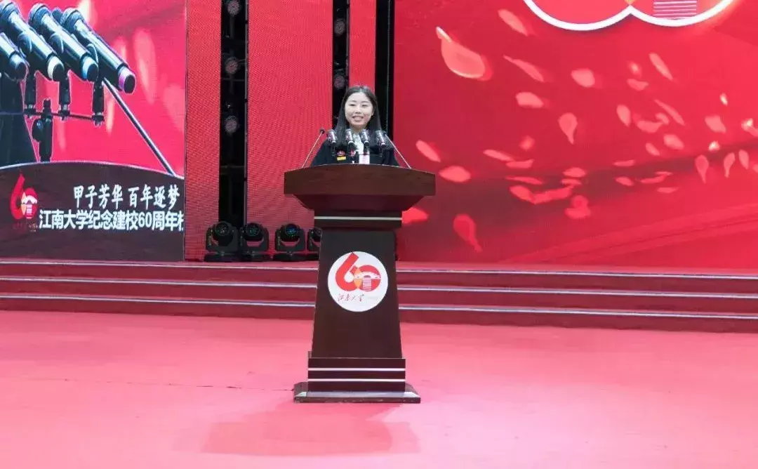 以十年为一代,5位优秀校友及1位在校学生代表先后发言,代表着60年来的六代江南人,为母校送上祝福