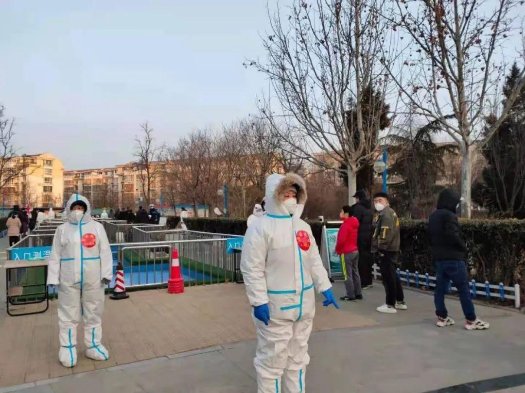 滨城第四次全员核酸筛查的冲锋号吹响!塘沽紫云中学党委副书记、校长苏金龙披挂上阵,带队对口支援塘沽街新城家园社区。他们的主要任务是负责外围秩序维护和执勤,寒风中几个小时的伫立,没有丝毫怨言。战队中还有涂玲、葛琳琳、刘振军、吴海玥、娄颖、牟雪、白日丽、姚晓娜、刘丽杰、武海荣、符芳等党员和入党积极分子钱敏、赵欢。