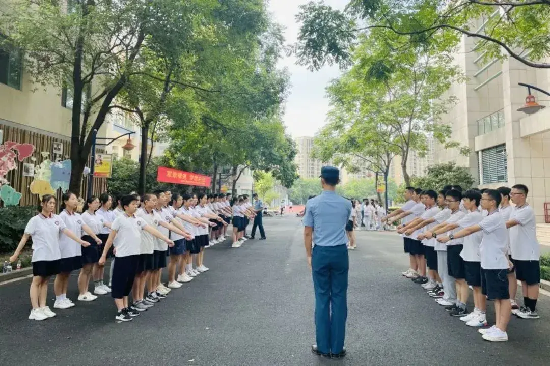 开学前夕,高一新生进行了国防教育活动。站军姿、敬军礼、走正步……300余人顶着烈日训练,哪怕汗水湿透了训练服,依旧咬牙坚持。