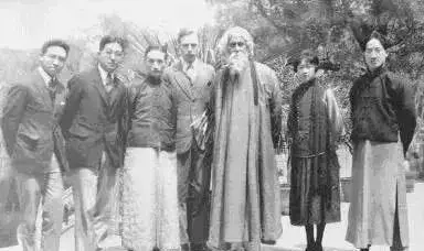 图注:泰戈尔访华期间与徐志摩(右一)、林徽因(右二)等人合影