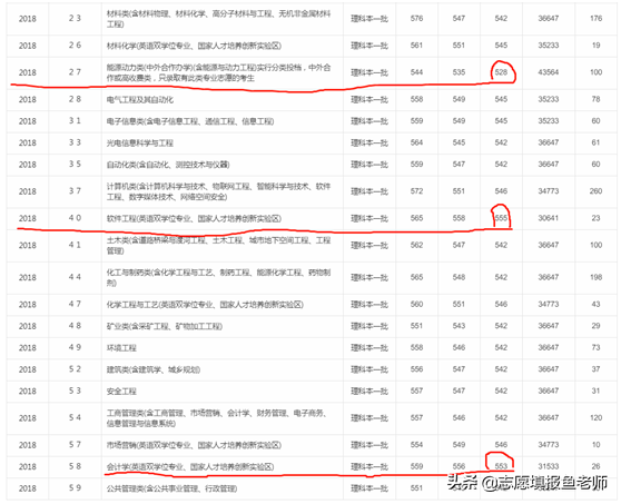 如上图所示,武汉科技大学名主要以工科类专业见长,从专业分数线来看,如计算机、软件工程等专业吗,都超过了其投档线10-20分,申报武汉科技大学工科类专业的同学,注意要留好自己专业分数线的旷量,才能保证专业录取的满意度哦。