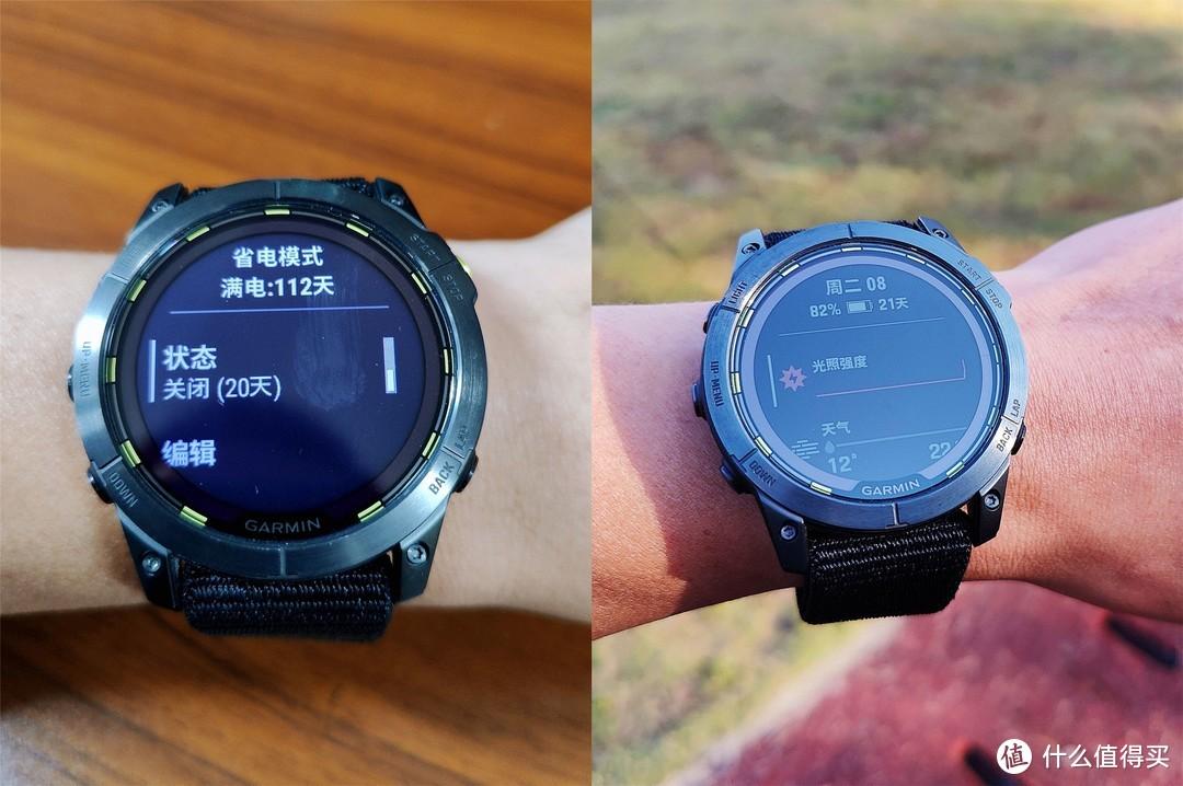 续航上来讲,这样的短距离越野,佳明ENDURO2和AW Ultra 都没什么问题。不过按AW Ultra的续航表现,开启GPS户外运动后,屏幕常亮,续航时间大概只有十四五个小时,要是碰上226大铁、100公里或百英里越野,显然是不够的。ENDURO2的续航就不需要强调了,太阳能+大电池,目前最强续航,智能模式下最长能达到46天,这也是很多专业长距离运动员,离不开佳明的一大原因。ENDURO2相比Fenix 7x 续航提升25%左右,牺牲了1毫米的厚度。