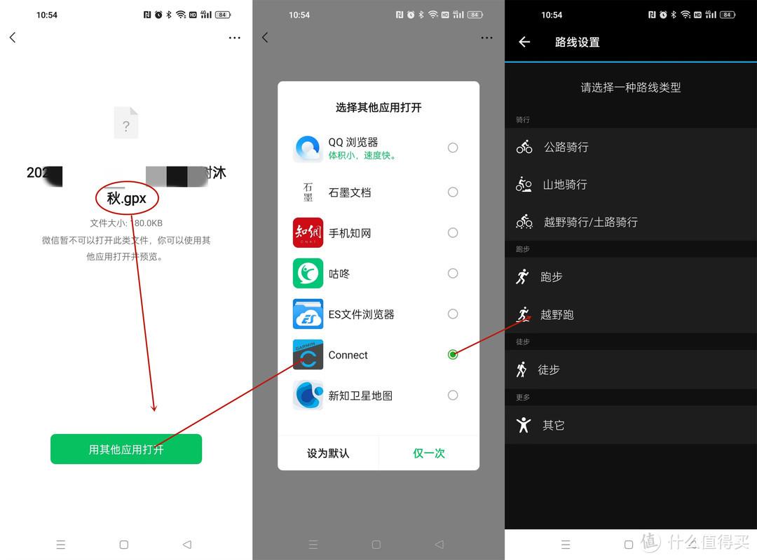越野赛前准备,导入路线当属基操,奈何AW并不支持。佳明系导入路线的操作很简单,找到微信或者其他渠道收到的GPX路线文件,选择其他应用—佳明CONNECT打开,对应路线储存。