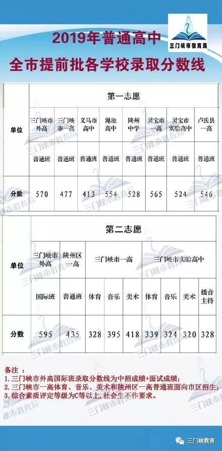 2019年河南三门峡中考高中学校提前批录取分数线公布了,具体内容如下所示: