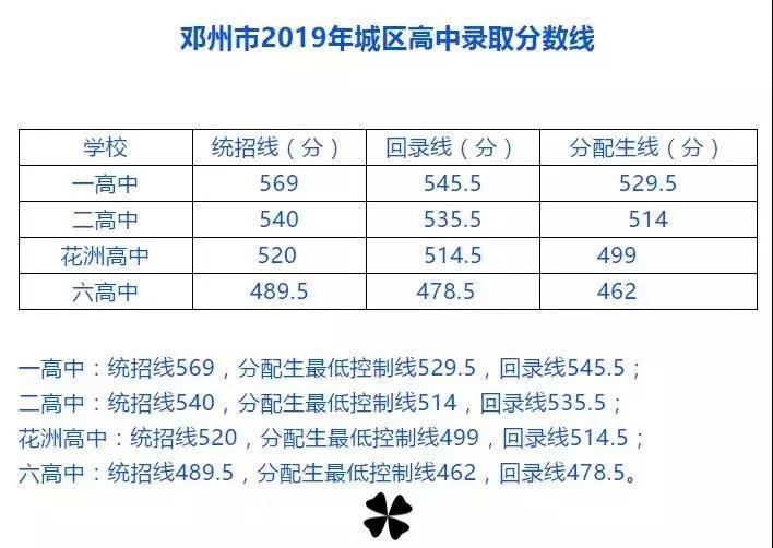 2019年河南邓州市中考高中学校录取分数线公布了,具体内容如下所示: