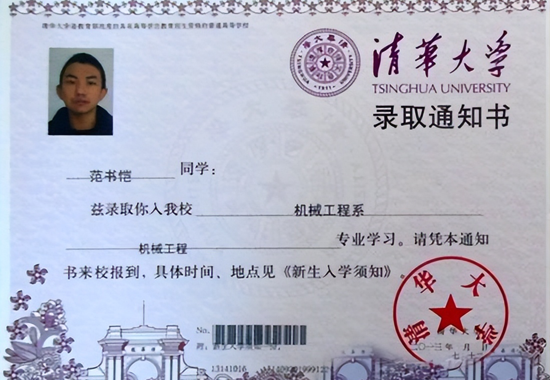 这让范书恺看到了希望,在之后的填报志愿中,他填了清华大学,让他惊喜的是,没多久,清华大学的录取通知书就送到了家中。这一刻,范书恺异常欣喜,因为他的梦想终于实现了。