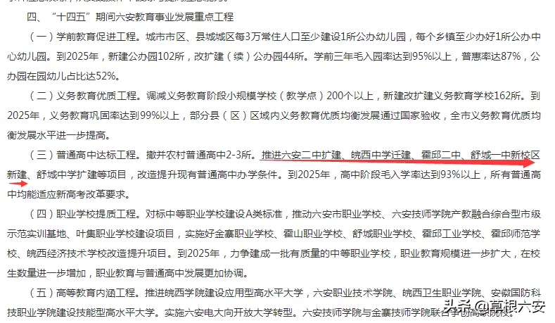 近日发布的《六安市“十四五”教育事业发展规划(2021-2025年)》内容,六安将推动推进六安二中扩建、皖西中学迁建。