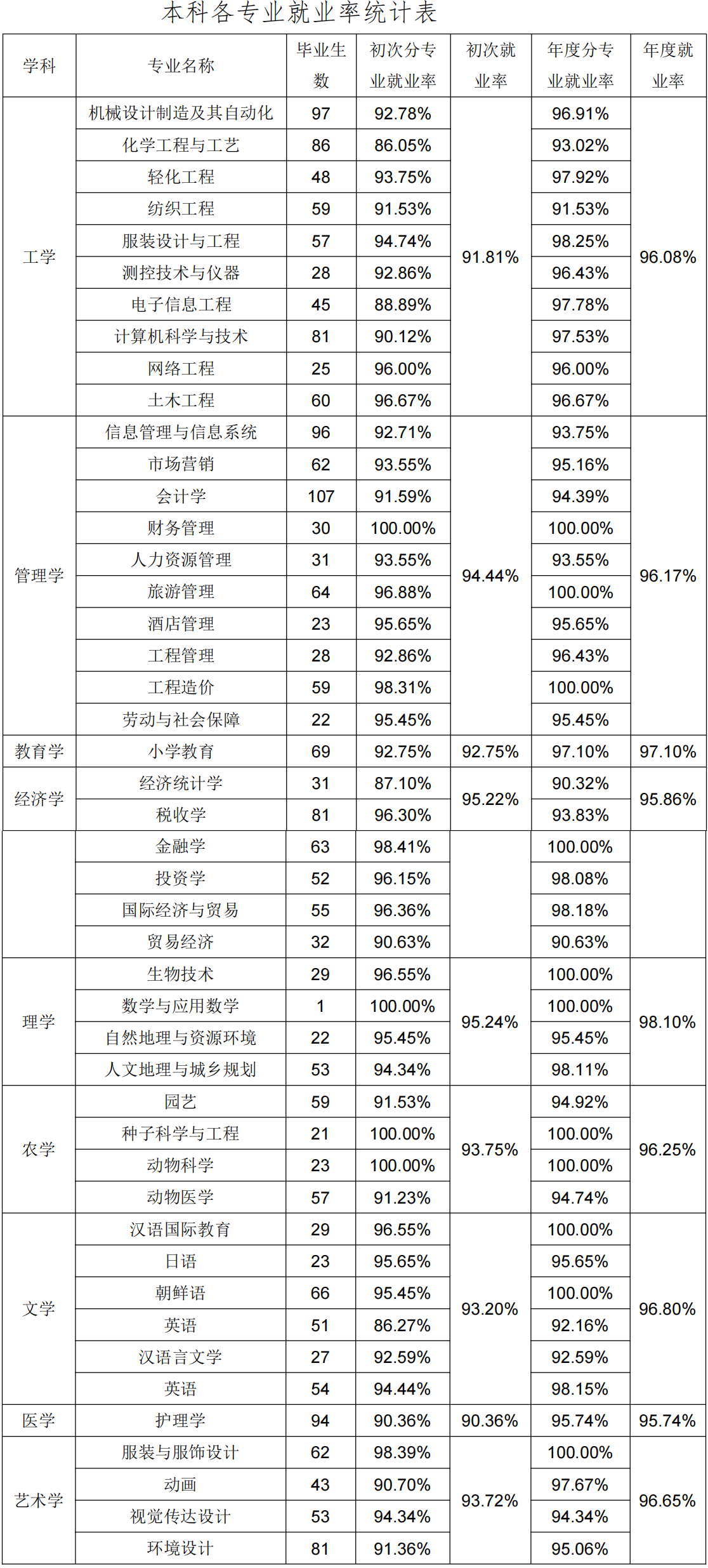 分专业来看,辽东学院的经济类、理学类专业总体初次就业率达到 95.00%以上;种子科学与工程、动物科学、动物医学、化学工程 与工艺四个专业升学率最高,分别达到 57.14%、47.83%、29.82% 和 23.26%。