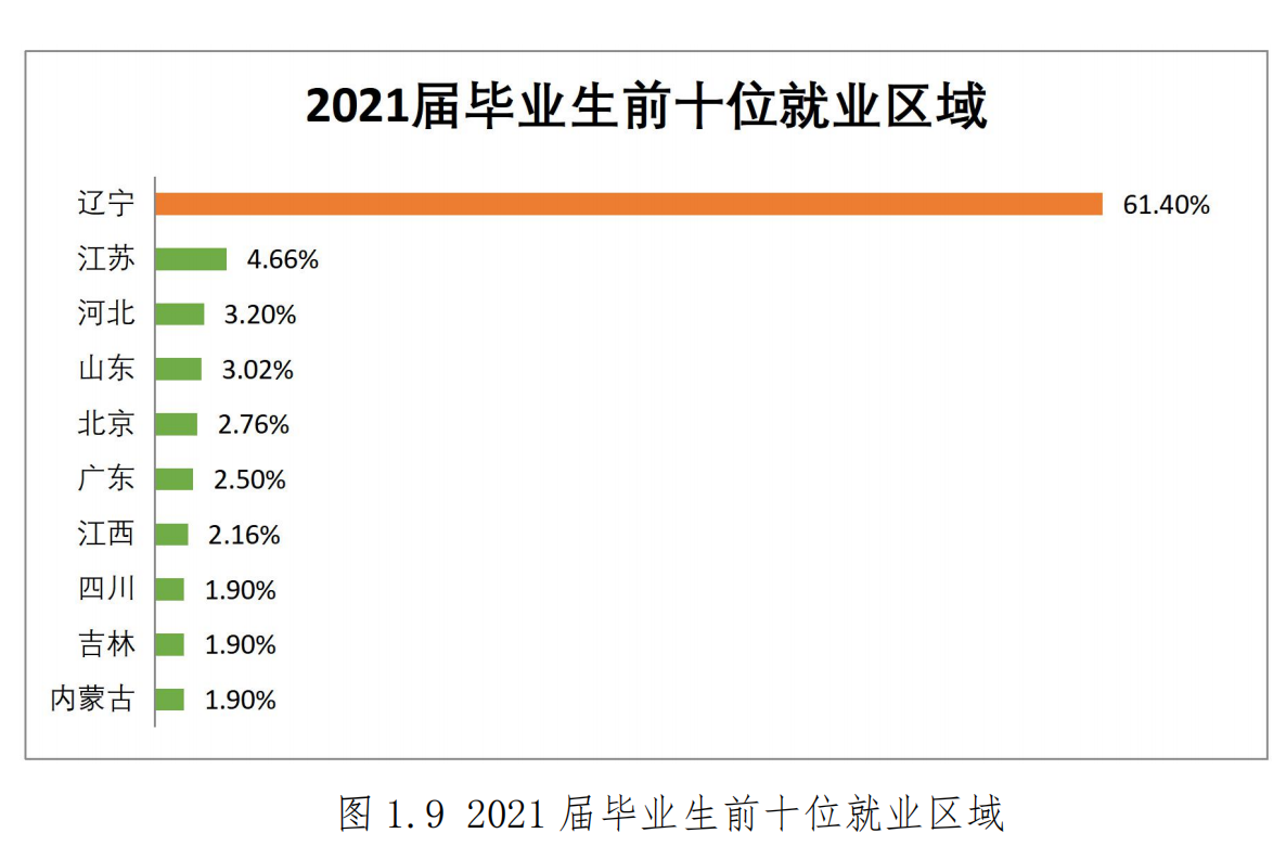 营口理工学院2021届毕业生就业区域分布在 29 个 省(直辖市),主要集中在辽宁,辽宁省内就业比例为 61.40%; 其次为江苏 4.66%,第三为河北 3.20%,第四为山东 3.02%,第 五为北京,2.76%。