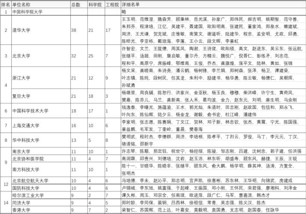 第8名到第10名分别是同济大学、国防科技大学、北京理工大学以及东南大学,这些高校都新增了5位及以上的院士。