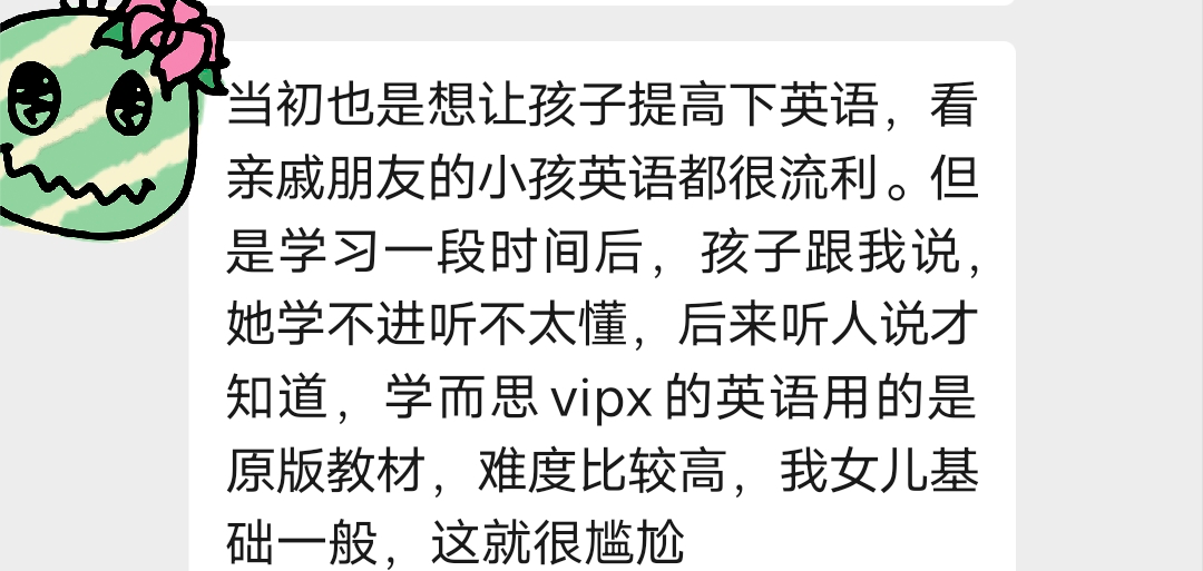 不足:VIPKID的的课件设计很多都是采用图文的形式,趣味性比较低,而且课程有一定难度,相对更适合有一定英语基础的孩子。另外一方面,VIPKID的课程单价还是挺高的,家长一定要充分考虑家庭经济承受能力。