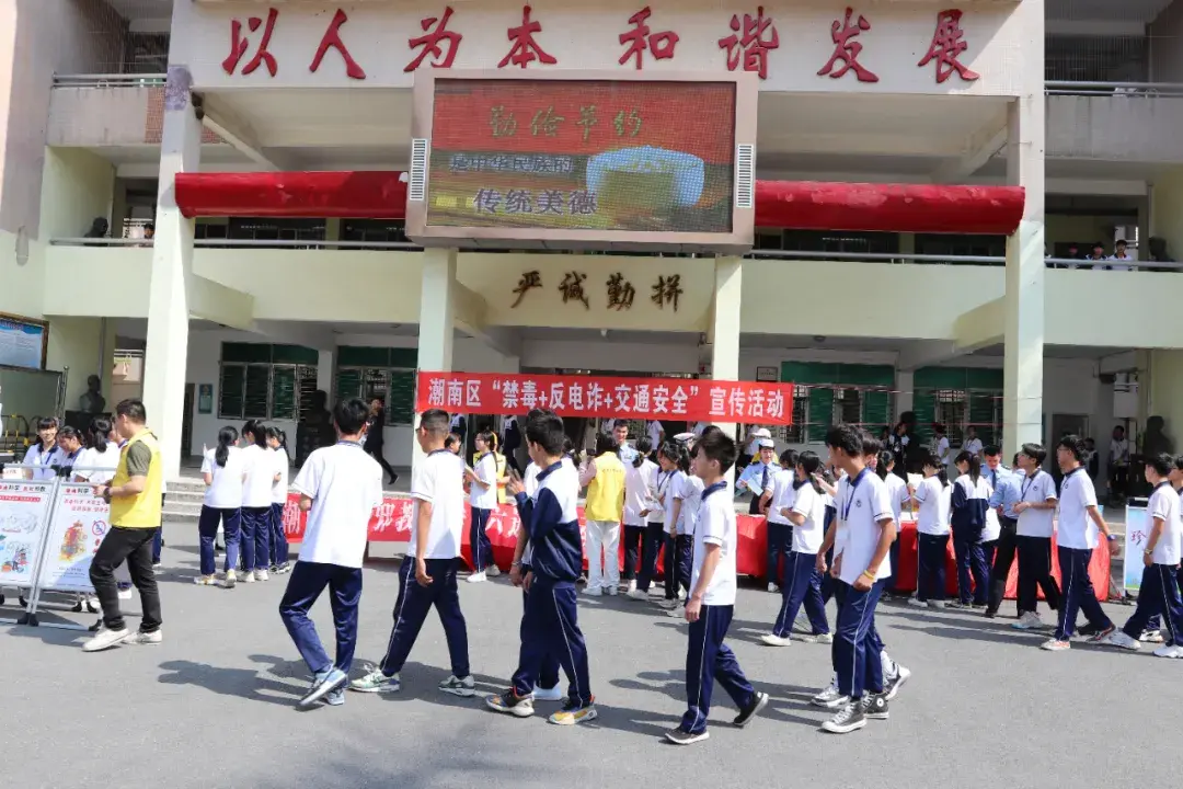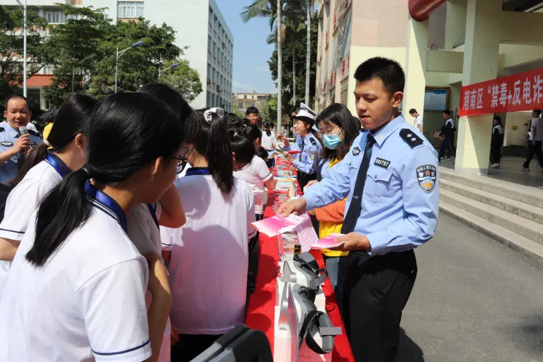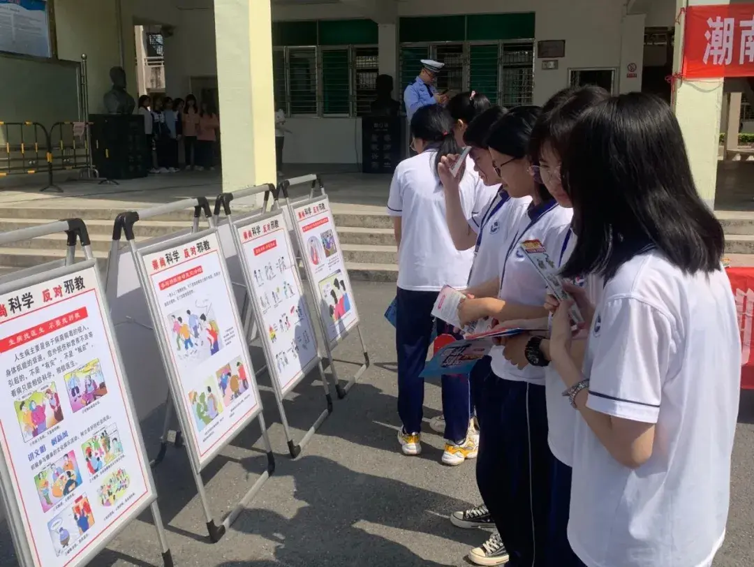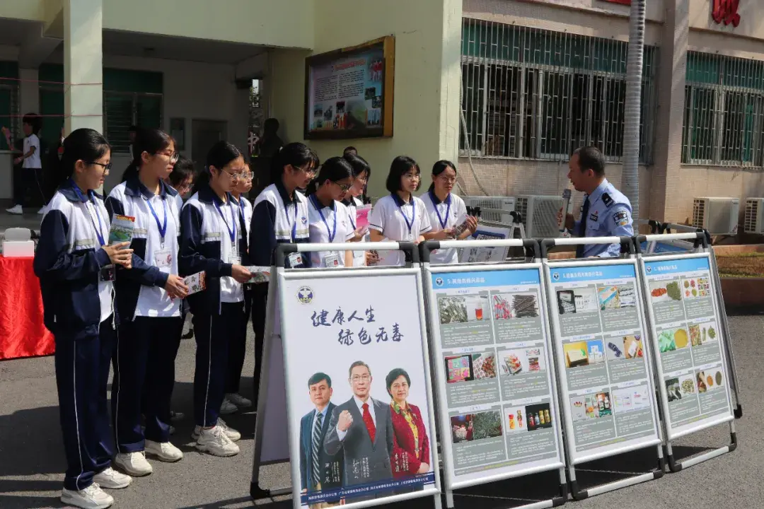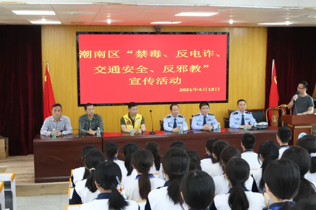 4月13日上午,潮南区公安分局宣传教育专项办公室组织禁毒大队、刑侦大队、交警大队联合区委政法委、区教育局前往潮南区两英中学开展禁毒、反电诈、交通安全、反邪教宣传教育活动。