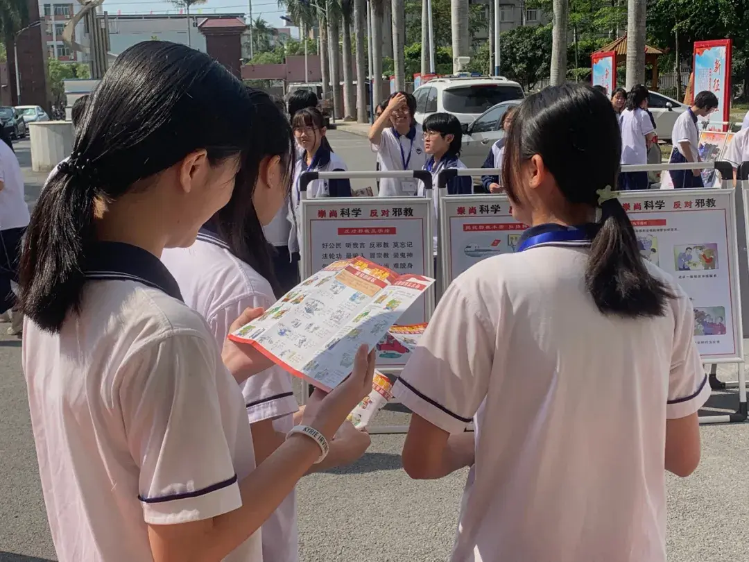 潮南区委政法委组织工作人员及志愿者通过现场宣讲、设置摊位派发反邪教宣传小册子、摆放反邪教知识大型展板等形式,用通俗易懂的语言向广大学生讲解如何识别邪教、拒绝邪教以及什么是反宣币、收到反宣币应当如何处理,引导广大学生要深刻认识邪教的危害,认清邪教组织的真实面目,坚决抵制邪教。