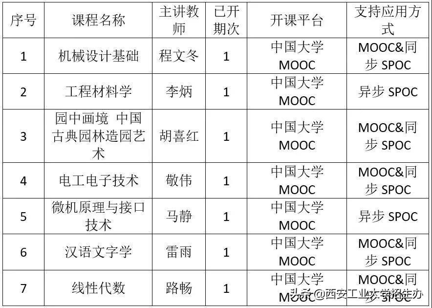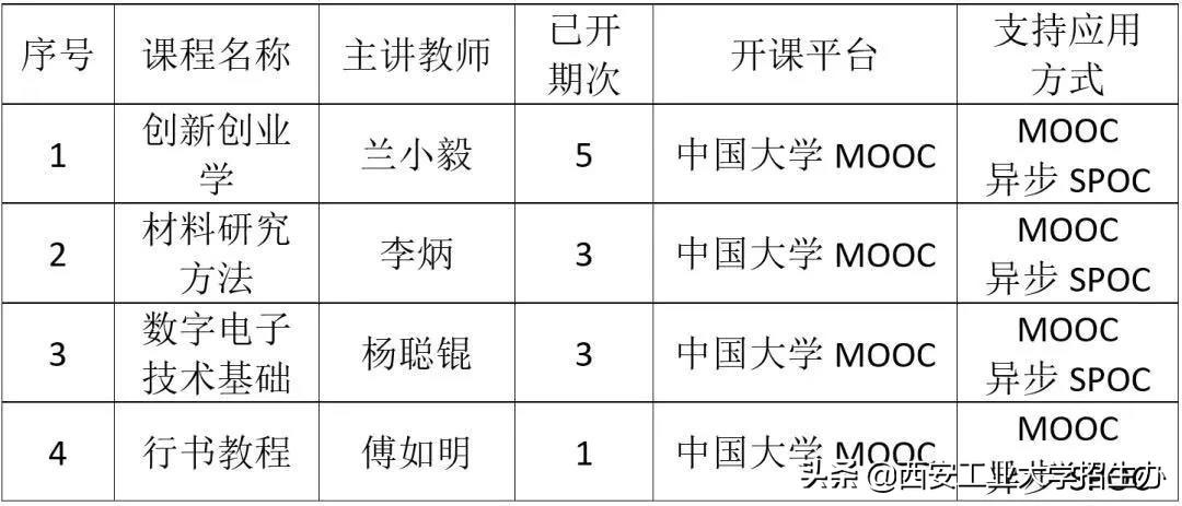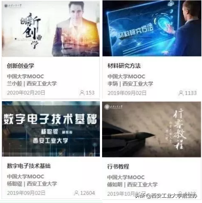 另外,西安工业大学也通过"中国大学MOOC"平台,全面开放学校精品在线开放课程。