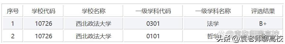 在第四轮学科评估中,西北政法大学有两个学科上榜,其中最强的学科是法学,被评为B+,哲学被评为C。