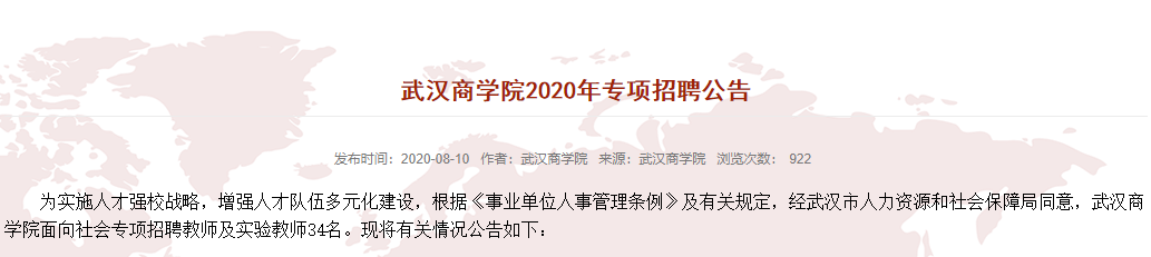 报名人员于2020年8月17日上午10:00至8月21日12:00登录武汉人事考试网进行报名,提交应聘申请(含上传照片,此后所用照片要求一致,未上传照片或上传照片不符合要求将不能通过审核)。