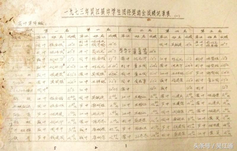 ▲1973年吴江县中学生田径运动会成绩表