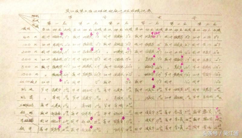 ▲1974年第五届吴江县田径运动会成绩表