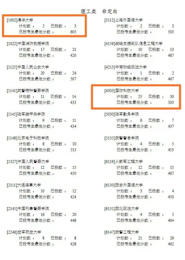 国防科技大学在宁夏提前批计划招生25人,投档人数为30人,投档线只有503分。这个分数线可能会有很多省份的学生羡慕,作为军中的“清华”,学校在其他省份的录取分数线都是在640分以上。