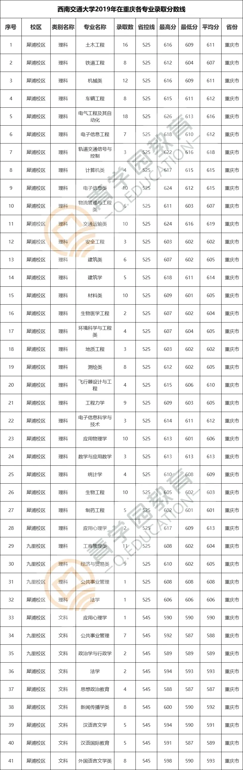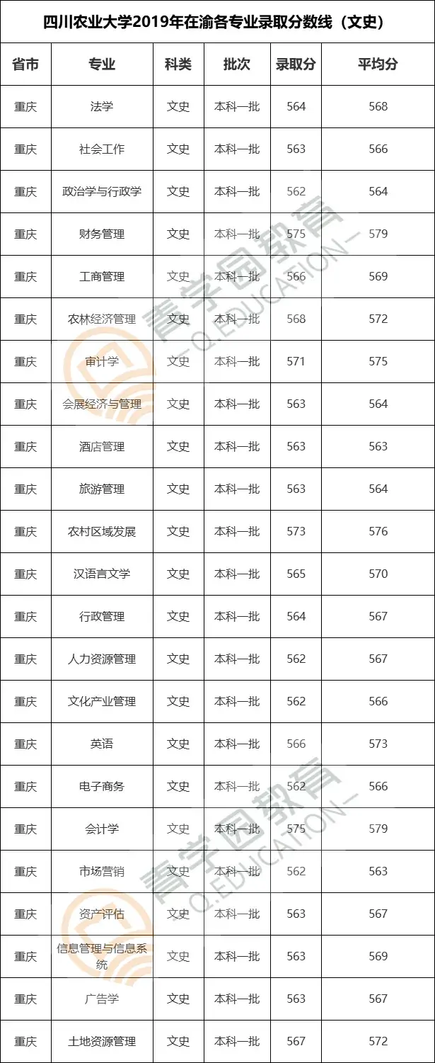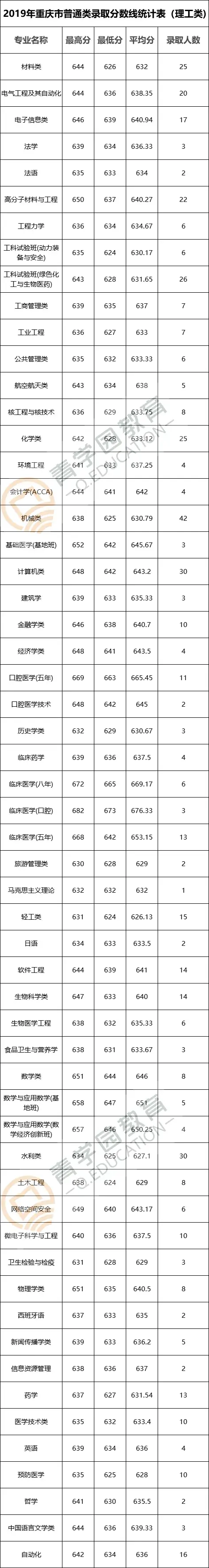 三、2019年在重庆各专业录取分数线