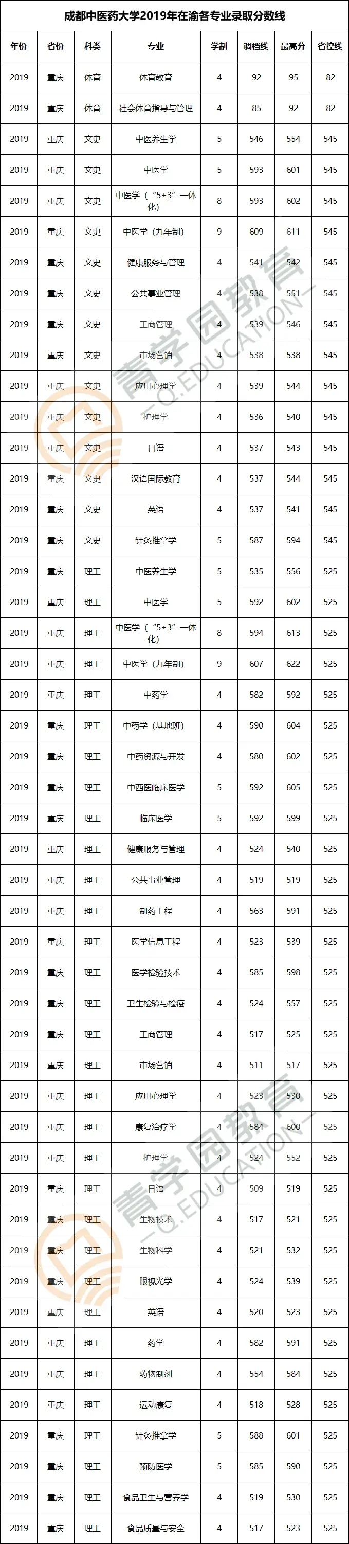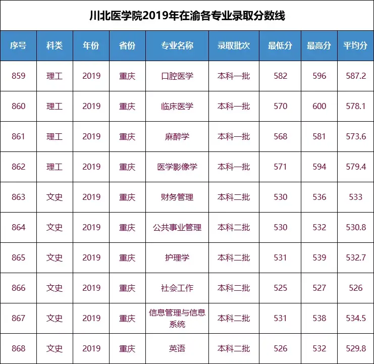 四、2019年在重庆各专业录取分数线