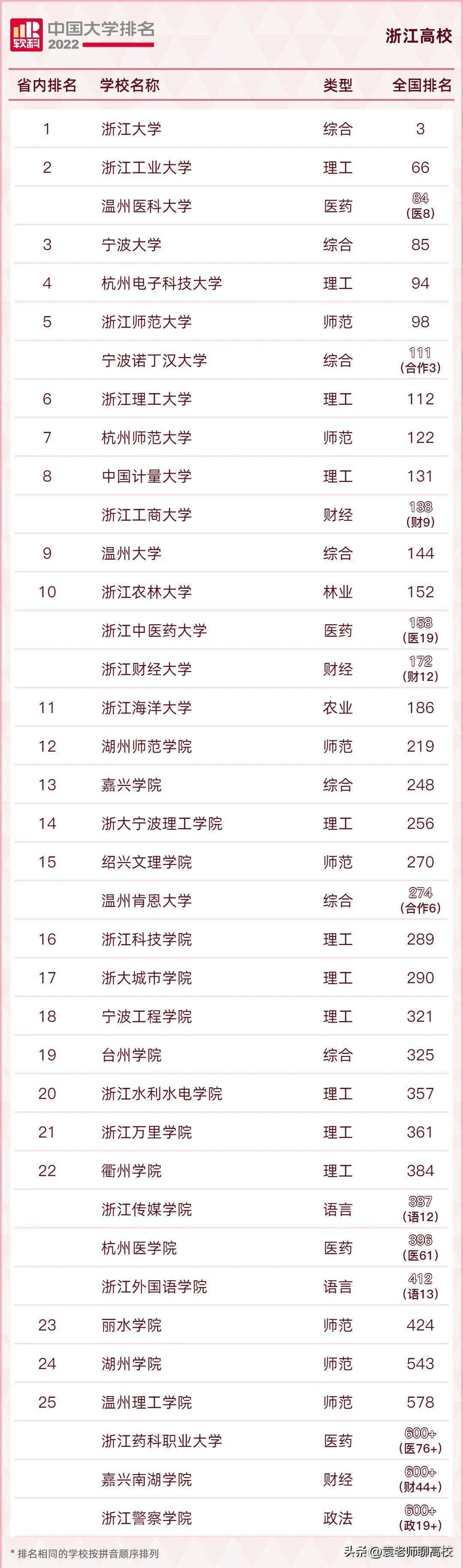 以2022年浙江省高校软科排名来看,浙江工业大学位居浙江省第二位,全国第66位,杭州电子科技大学位居省内第4,全国第94位,浙江理工大学位居省内第6位,全国第112位。