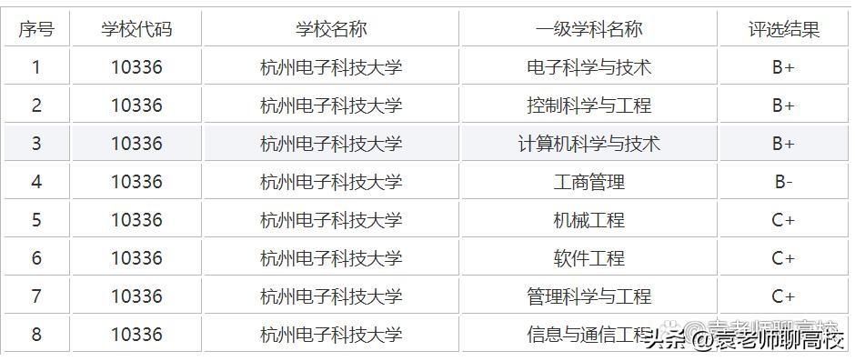 杭州电子科技大学在第四轮学科评估中,有8个学科上榜,其中最好的学科是电子科学与技术、控制科学与工程和计算机科学与技术,这三个学科被评为B+,具体可见下图。
