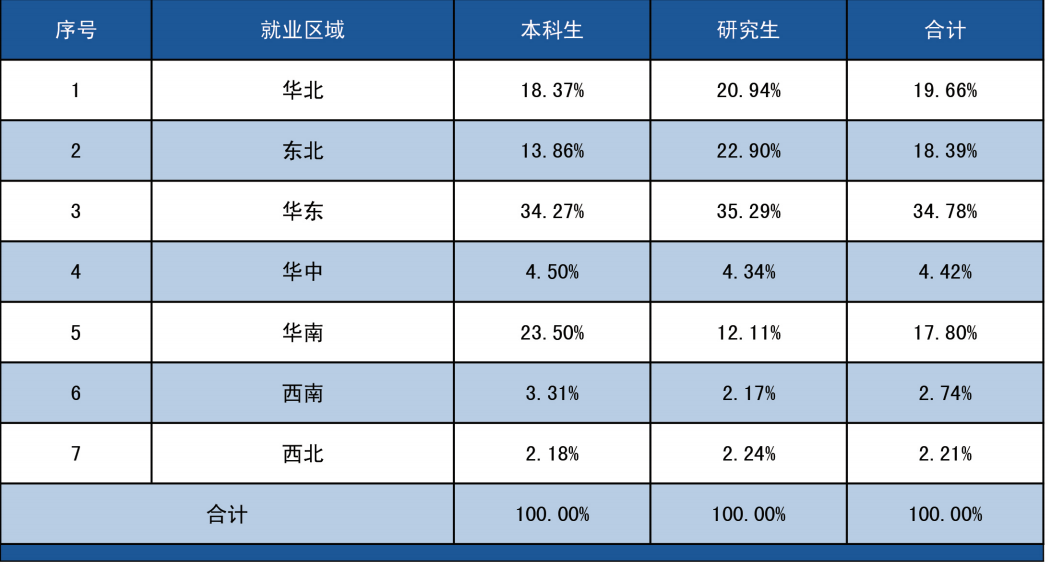 其次,大家不用担心,东北不会提供那么多就业机会,更多毕业生去了华东、华南这样发达城市聚集的地区。同样,有校方统计数据为证。