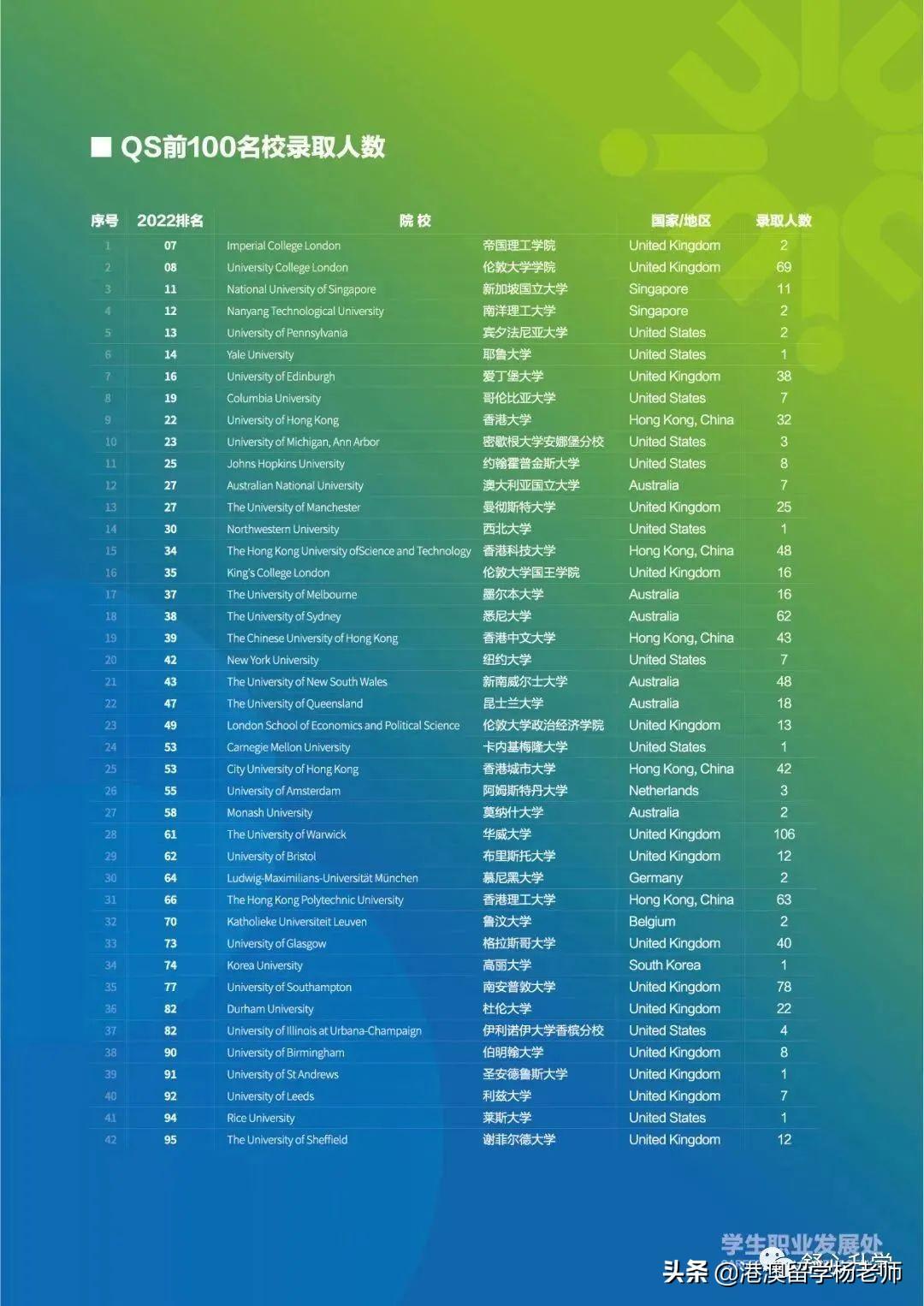 北师港浸大(UIC)2021届本科毕业生共有1523人,境内外总升学率约为74.5%。其中,选择出国/出境升学有1096人,约占毕业生总数72%,全球百强名校输送率约81%,比上一年人数增长23.4%。选择直接就业的毕业生就职地区以粤港澳大湾区城市和北京、上海为主。