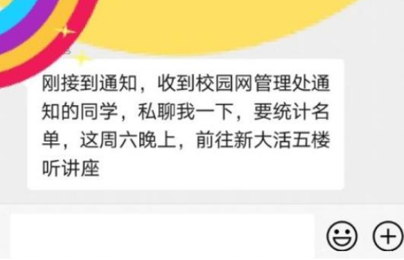 正当他觉得很羞愧的时候,班级里面的一条通知更令他感觉到尴尬。学校要求收到这些通知的同学私信名单,之后还需要前往教室里听讲座。
