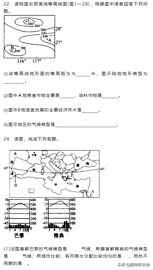 今天老师给大家整理的是初中地理经典试题请您查收哦!