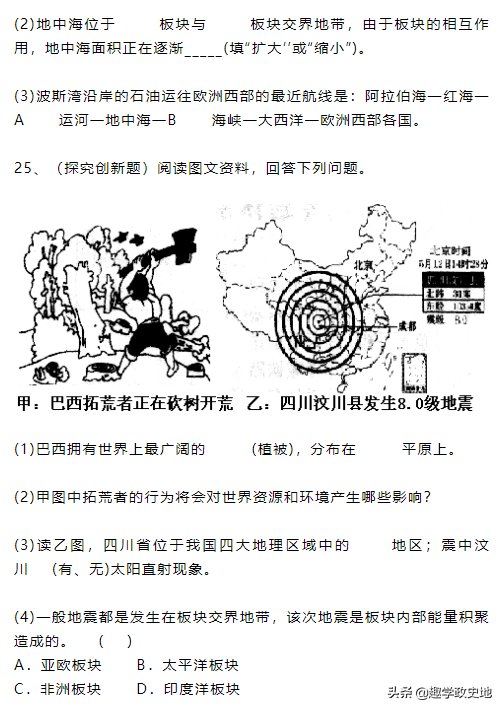 版权声明:我们致力于保护作者版权,注重分享,被刊用文章【中学试题(初中地理经典试题)】因无法核实真实出处,未能及时与作者取得联系,或有版权异议的,请联系管理员,我们会立即处理! 部分文章是来自自研大数据AI进行生成,内容摘自(百度百科,百度知道,头条百科,中国民法典,刑法,牛津词典,新华词典,汉语词典,国家院校,科普平台)等数据,内容仅供学习参考,不准确地方联系删除处理!;
