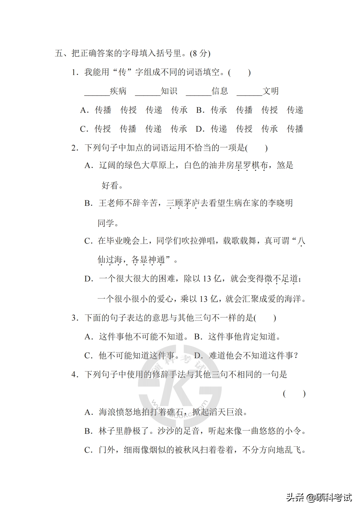 版权声明:我们致力于保护作者版权,注重分享,被刊用文章【中学试题(小升初语文总复习)】因无法核实真实出处,未能及时与作者取得联系,或有版权异议的,请联系管理员,我们会立即处理! 部分文章是来自自研大数据AI进行生成,内容摘自(百度百科,百度知道,头条百科,中国民法典,刑法,牛津词典,新华词典,汉语词典,国家院校,科普平台)等数据,内容仅供学习参考,不准确地方联系删除处理!;