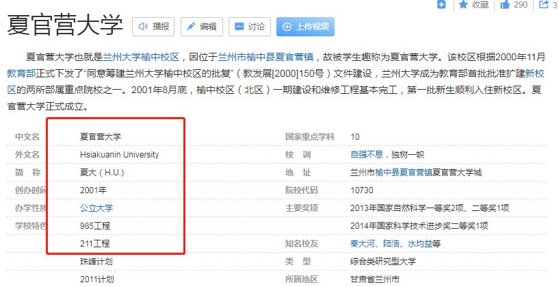 大概很多人和笔者一样,第一次听说“夏官营大学”,甚至在百科上夏官营大学还有个“厦大”的简称,可实际上它是兰州大学榆中校区的江湖绰号,因为地理位置在夏官营镇才有这个绰号,不过搞笑的是在百科上有单独“夏官营大学”的词条,看来这绰号也是十分响亮了。