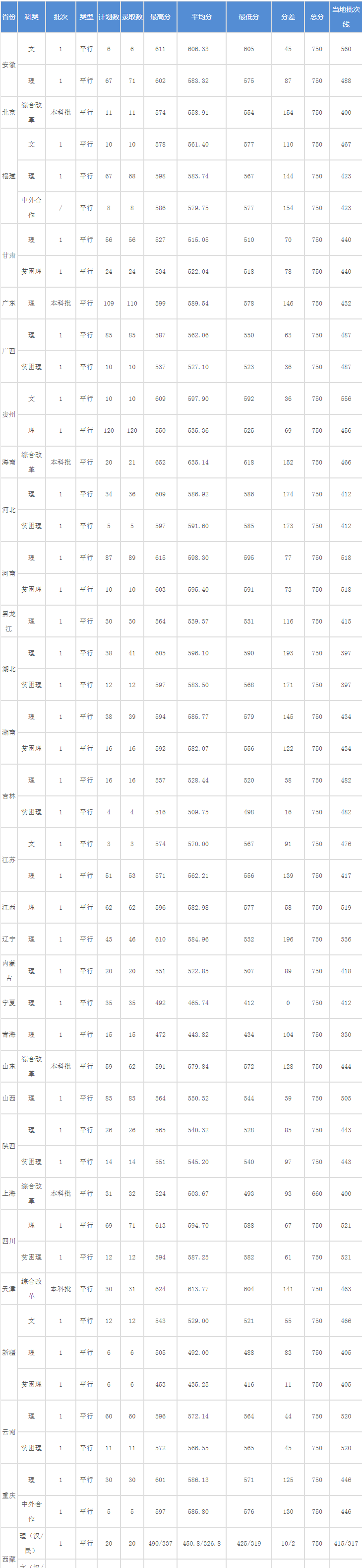 同时,该校30个招生省份中,绝大多数省份最低投档分与当地批次线之差继续保持在高位。理科一 批招生的17个省份中,黑龙江、青海等2个省投档分高出招生批次线 100 分以上, 安徽、内蒙古、陕西、新疆等 4 个省高出 80 分以上;综合改革招生的 13 个省份中, 辽宁、湖北等 2 个省高出190分以上,北京、海南、河北等 3 个省高出 150 分以上。