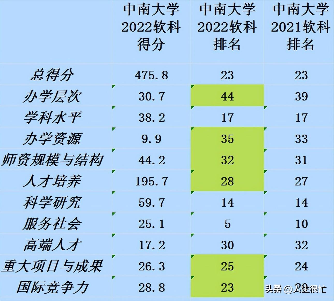 2022年软科中国大学榜单中,中南大学软科排名全国第23名。这一排名同2020年排名相同!