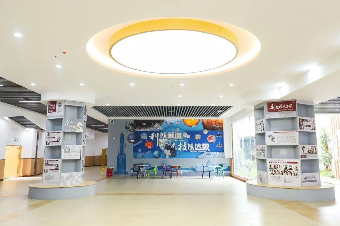 诺贝尔大厅向外往左右延伸,分别是国学馆和国际馆,认真落实学校“培养有中国灵魂,有世界眼光的现代人”的办学目标。