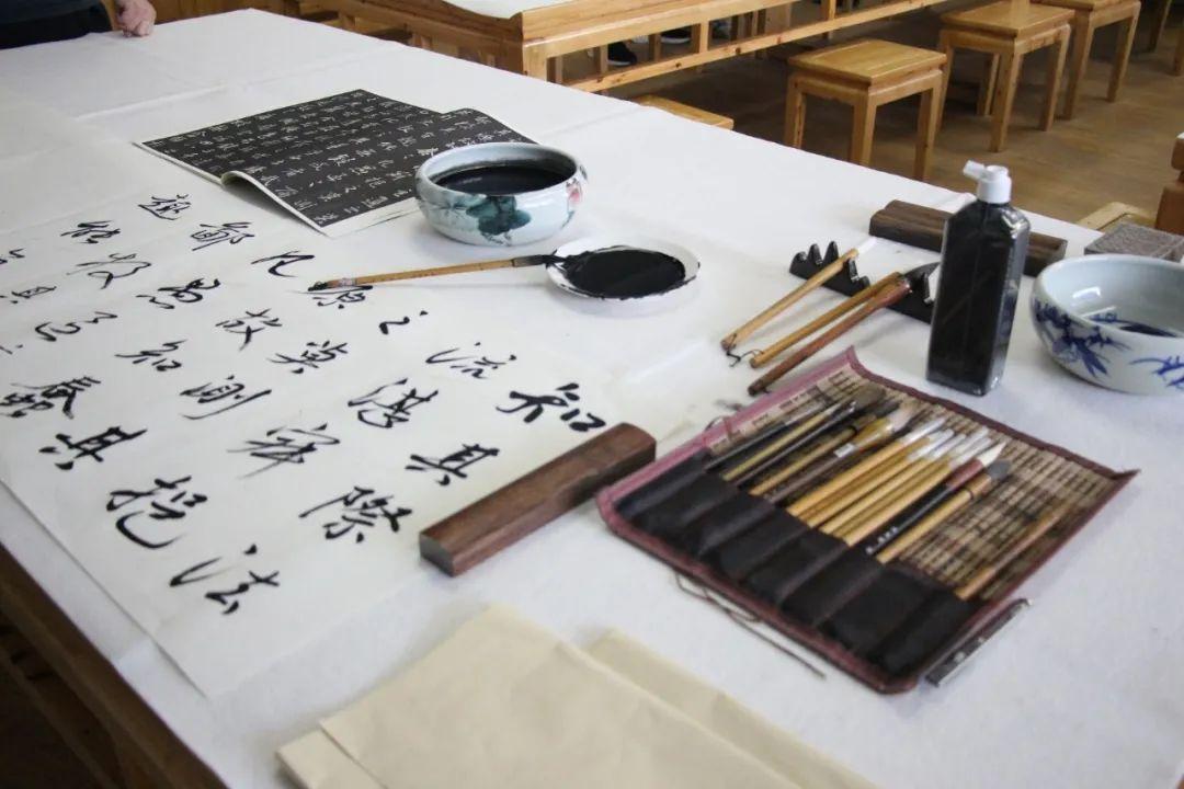 书法室:敞亮的教室和专门定做的桌子,采用中式风格进行装修,每间教室都有空调,夏天也能平心静气的修习书法。