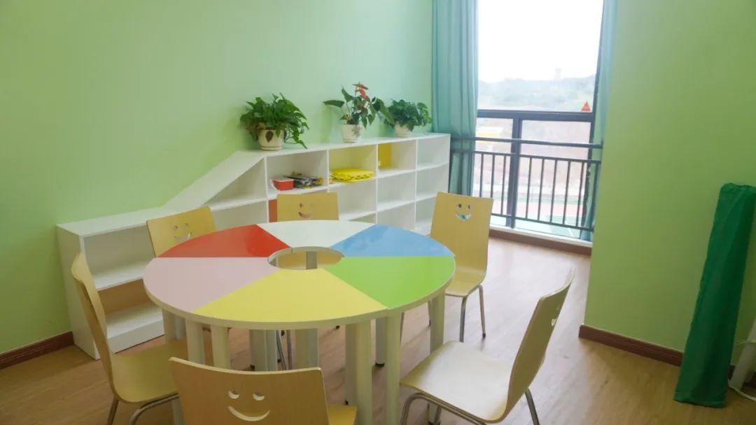 中心以绿色墙体为主,不仅接待学生老师,也接待家长。拥有多名专业的心理辅导老师和积极教育正念养育导师。