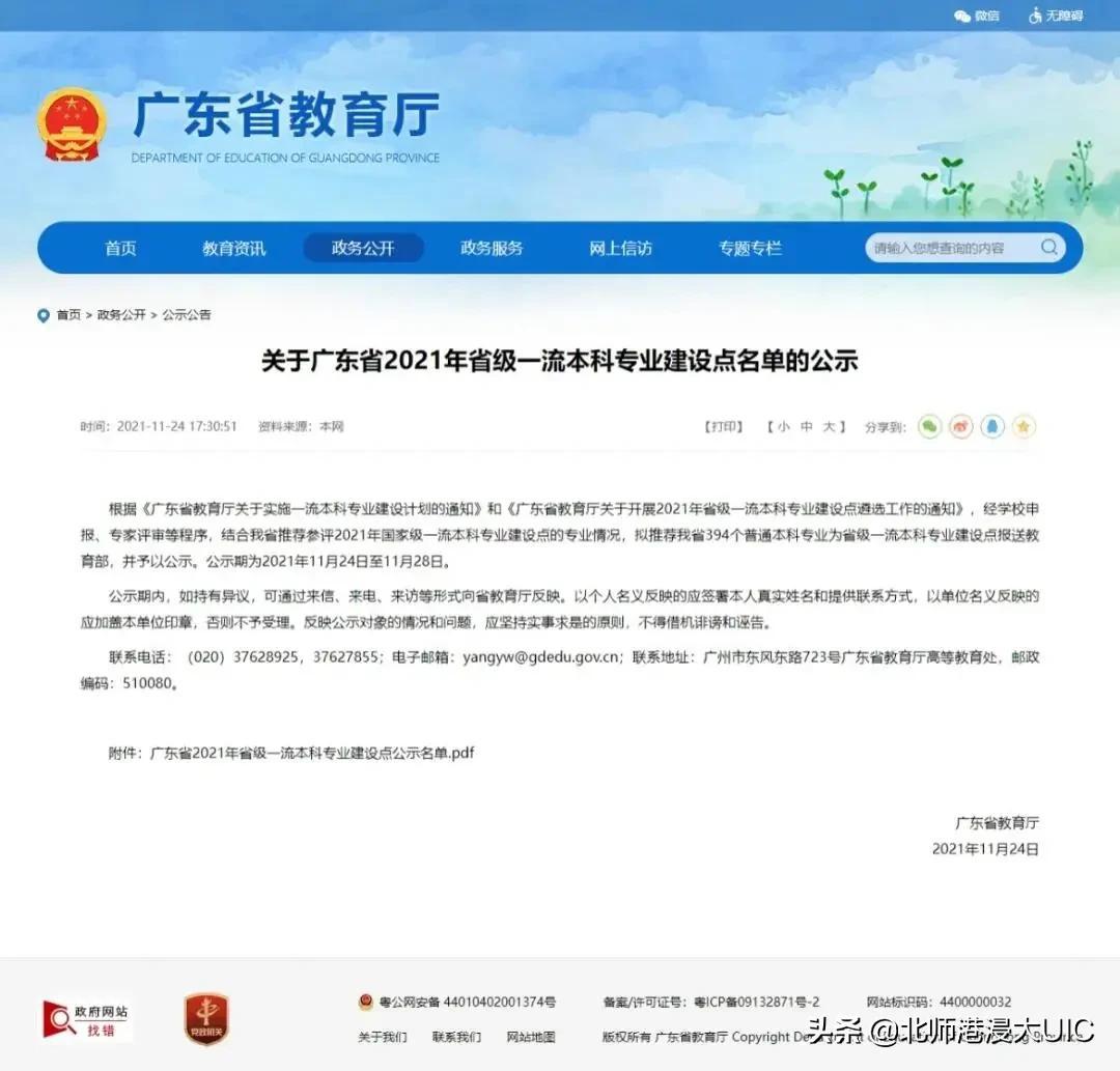近日,广东省教育厅网站公布了2021年省级一流本科专业建设点名单,北师港浸大(UIC)2个专业入选。自2020年起,UIC累计3个专业入选省一流专业建设点,分别为应用经济学专业、计算机科学与技术专业和去年上榜的统计学专业。这表明我校在学科建设、人才培养、师资水平、科技创新能力等方面进步显著。