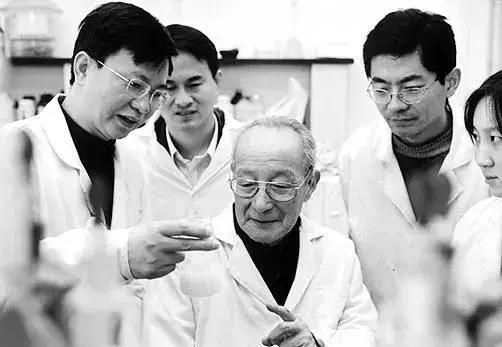 二○○三年在北大稀土实验室严纯华(左一)与导师徐光宪