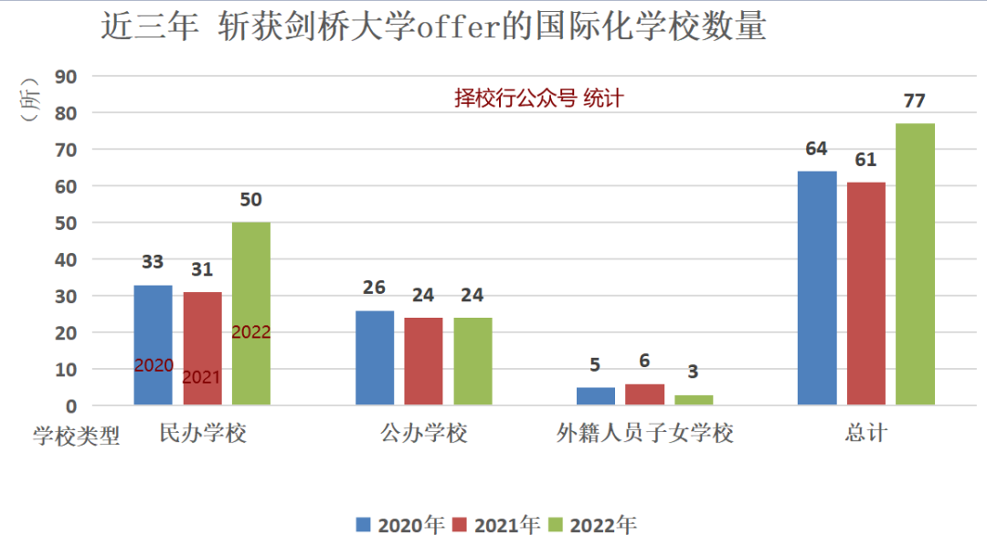 另一方面,在获得剑桥大学的offer数量方面,民办学校增速明显超过了公办学校,很多老牌民办学校呈翻倍式增长,新的民办学校也是跃跃欲试。