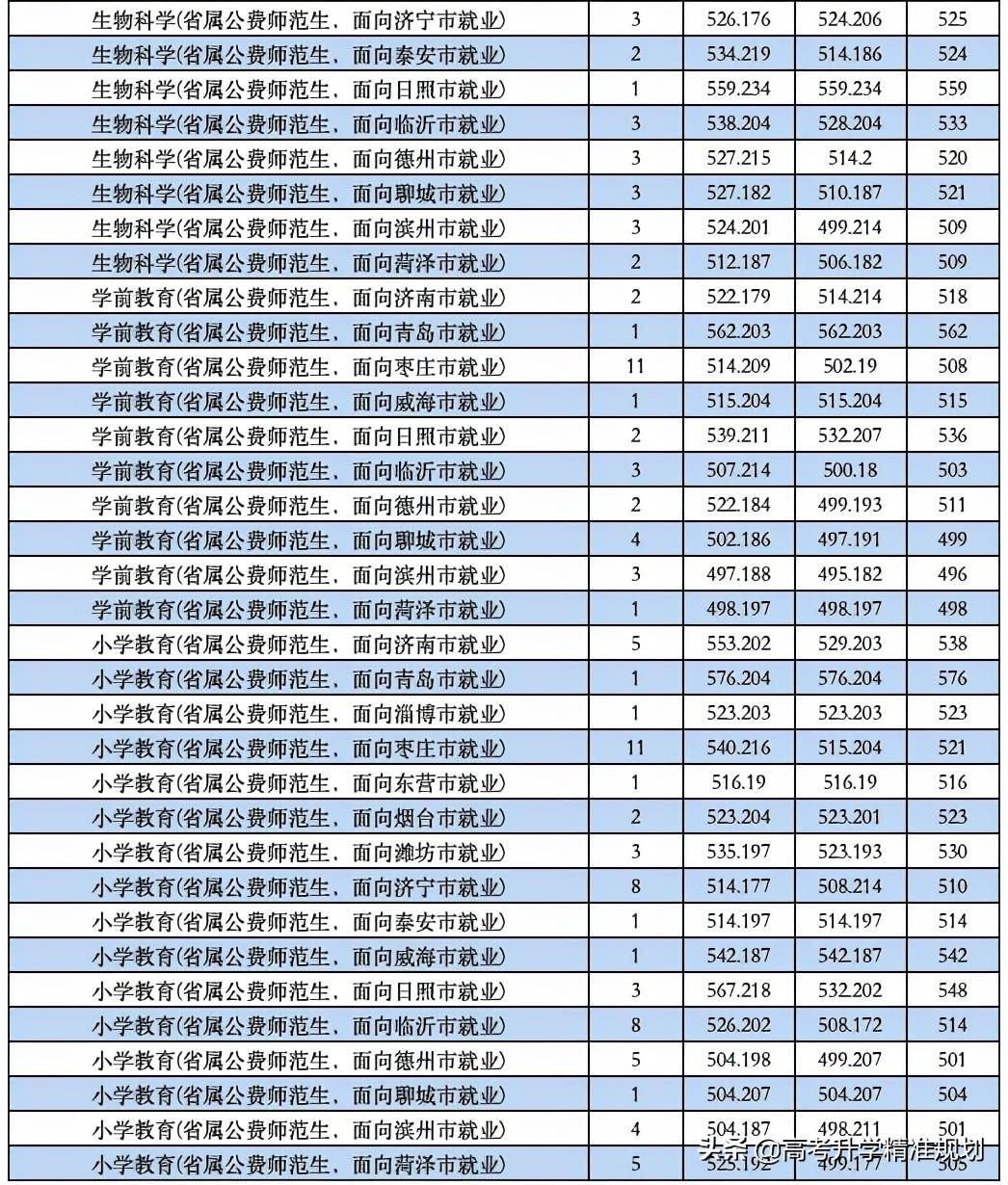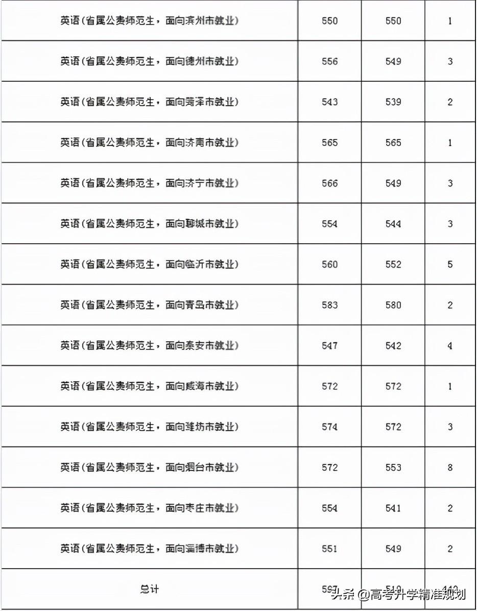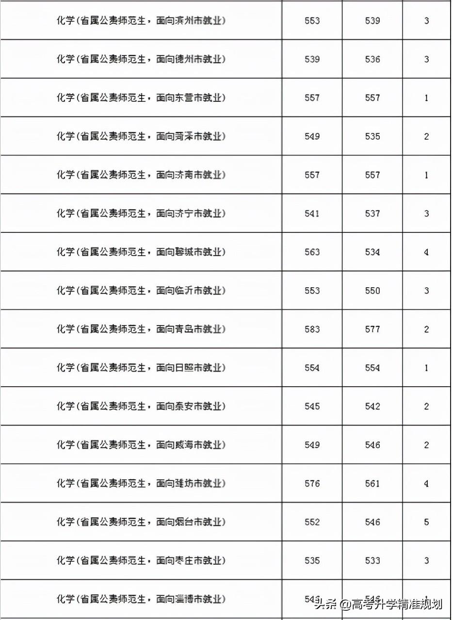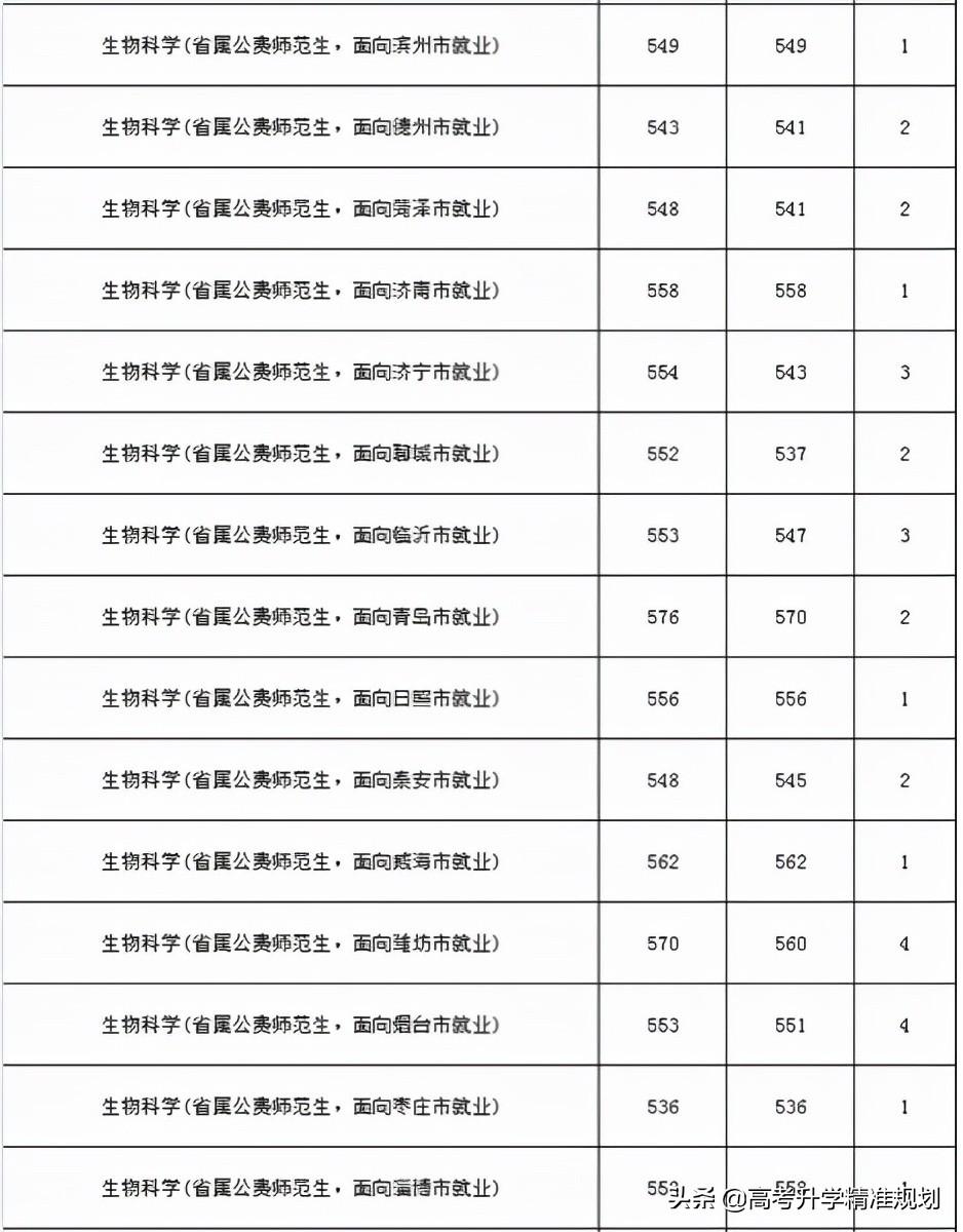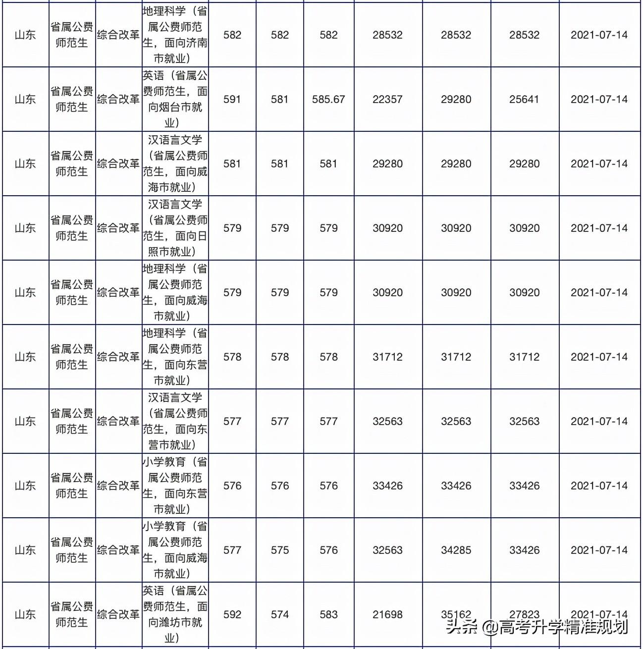 以下为山东2021年省属公费师范生录取情况(附分数线),请2022年高考生查阅参考。