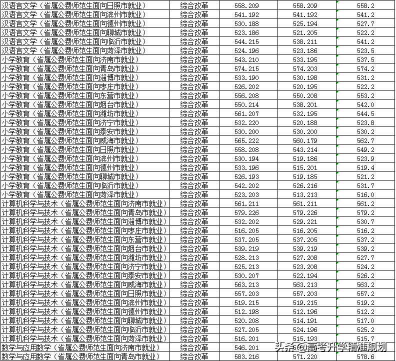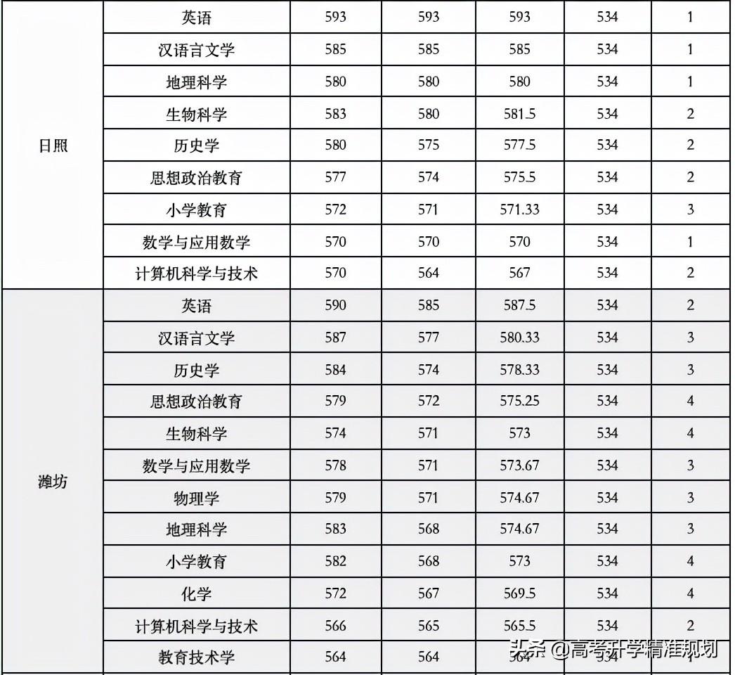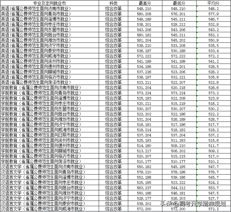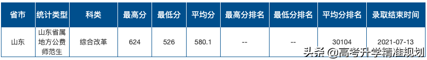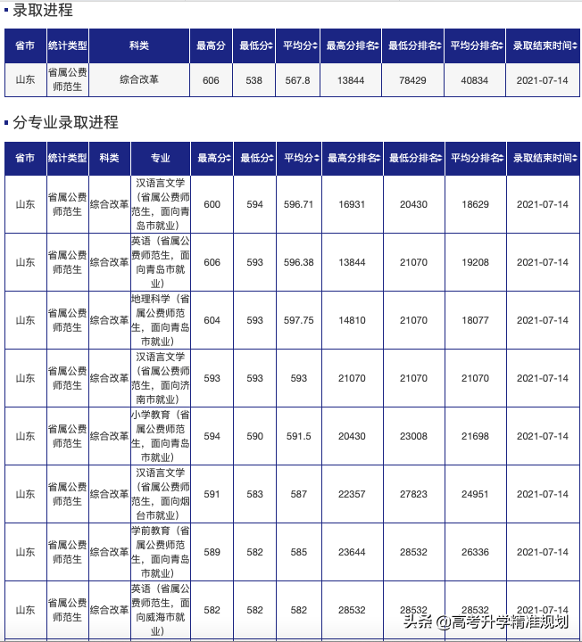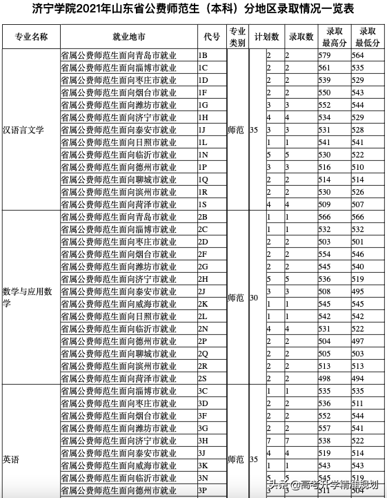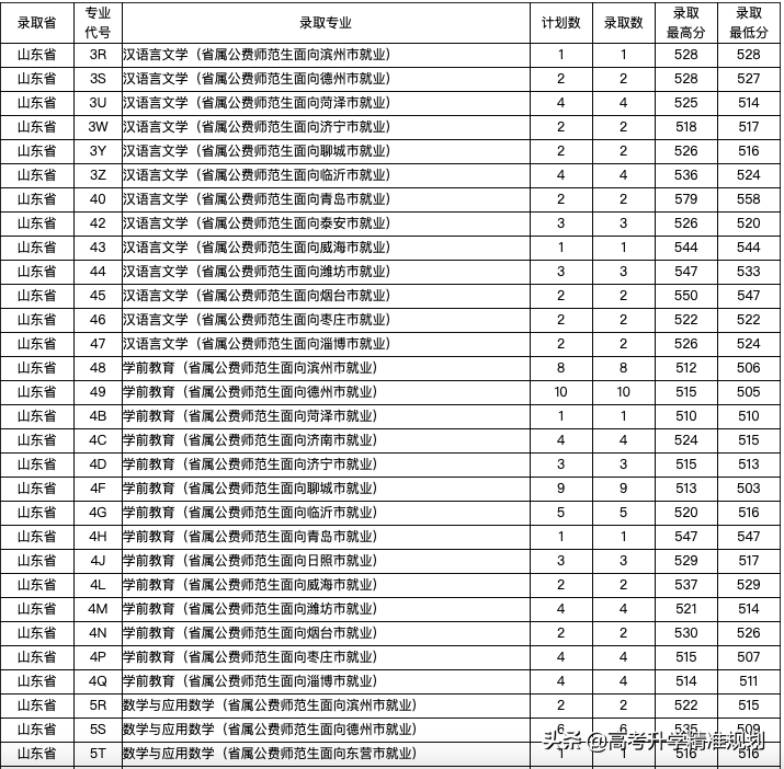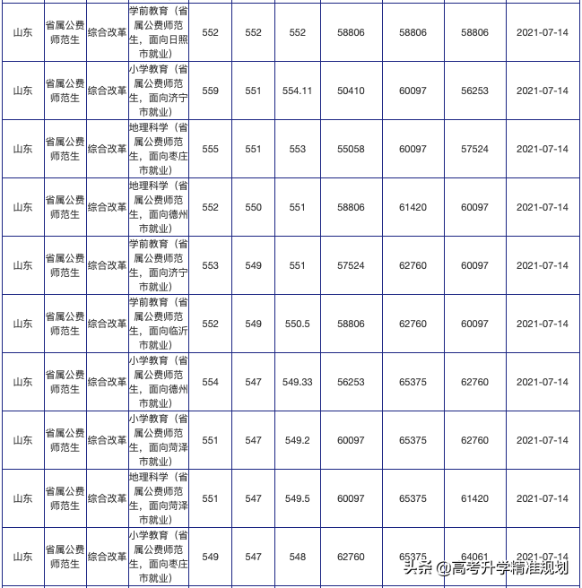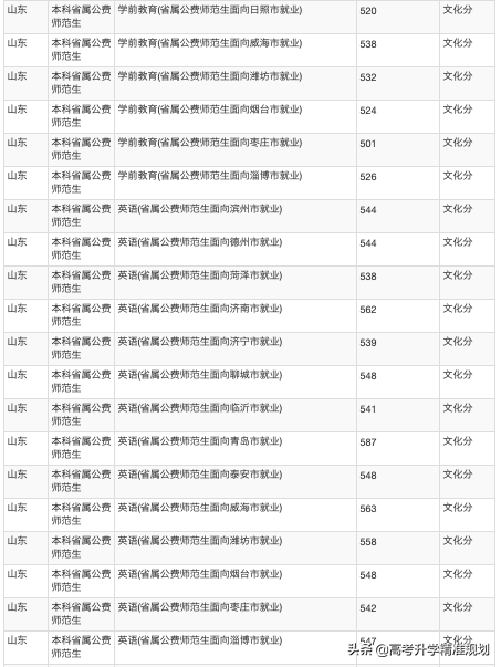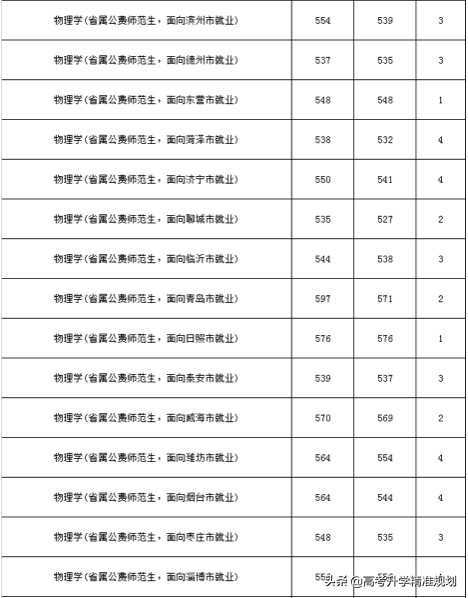 以下为山东2021年省属公费师范生录取情况(附分数线),请2022年高考生查阅参考。