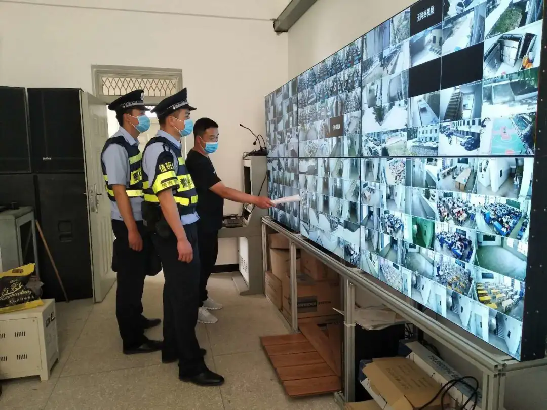 朋普派出所民警在学校开学前,走进校园,对学校开展全面的安全检查。检查期间详细查看、询问校园内部保卫力量配备情况,检查安保器械的管理和使用,对学校保安力量是否会使用安保器械进行了解,并开展现场指导。