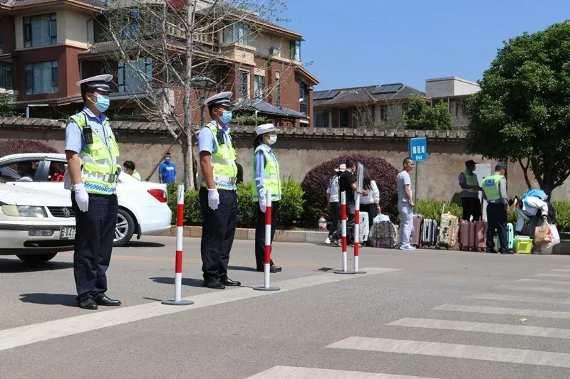 弥勒市公安局交警大队组织警力配合学校做好开学工作,维护学校周边道路交通秩序,护航学生安全有序入校。