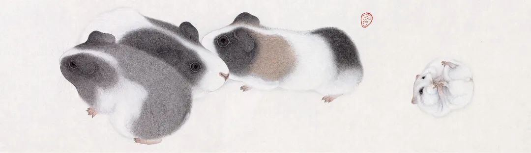 罗玉鑫作为广东中国画画坛的新锐中坚,屡屡在全国性画展中取得佳绩,已然是我辈之翘楚者。她的画作,清新秀逸,得宋人精谨入微之雅致,又不失现代绘画特有的形式美感和思想性追求。在她所描绘的走兽翎毛中,我们可以看到她对生活在天地之间的可爱生灵的深入观察,并用一种怀抱众生的平等之心与之交流。因此,她的画里充满温情,带着欢乐,洋溢着一股宁静而又生机盎然的气息。