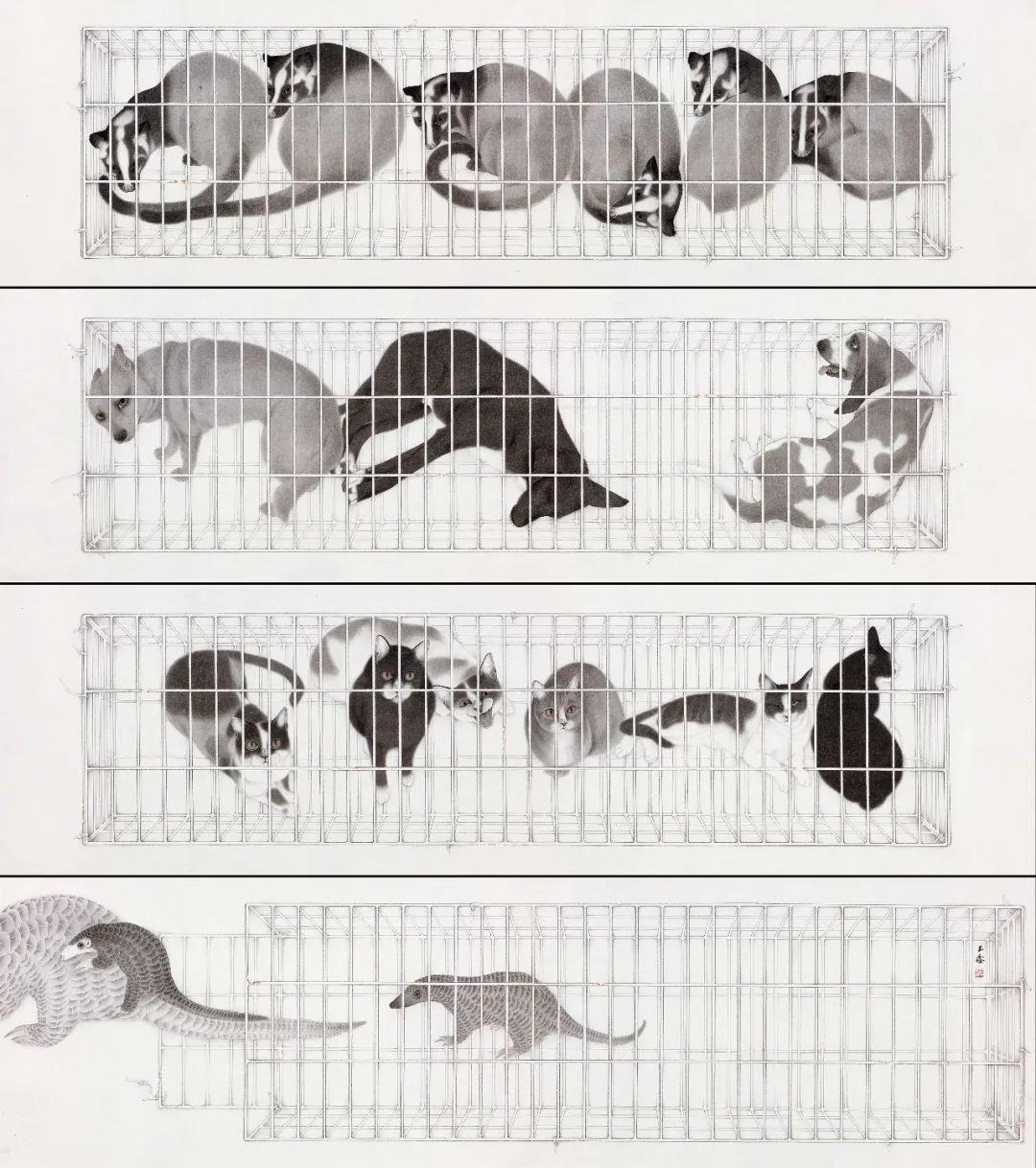 在她画作沉着而又淡雅的色墨背后,蕴含着画家对于天地生灵的精微观察和对一切有情众生的关怀。她的“动物园”不仅让我们看到了自然的生趣,更着意于引发我们对于人与自然关系的新思考,从而也使展览更具人文关怀和时代意义。