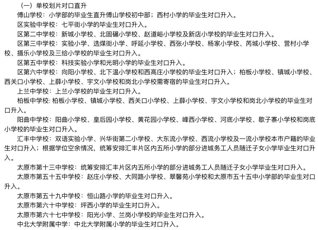 各街道、乡镇所属小学毕业生,对口直接升入本街道、乡镇的初中学校就读。